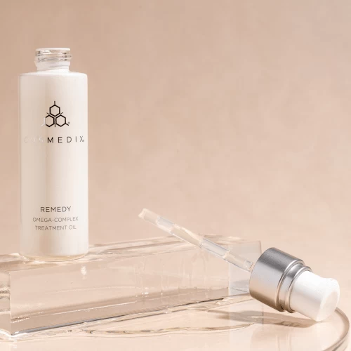 A powerful Omega-Complex Treatment Oil, Remedy contains beneficial fatty acids, antioxidants, and vitamin E to nourish and protect skin, imparting a healthy, glowing appearance from face to feet.
