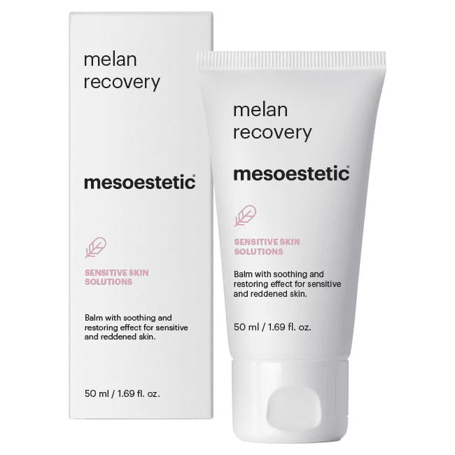 Introducing Melan Recovery to the Mesoestetic family. This soothing and restorative balm helps calm sensitive, reddened and inflamed skin providing an immediate sensation of comfort and relief. Recommended for post-treatment use to boost depigmentation efficacy and to prevent new hyperpigmentation forming, it is also ideal as a daily moisturiser for rosacea or compromised sensitive skin.
